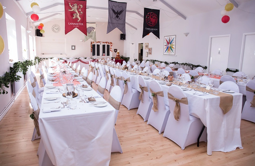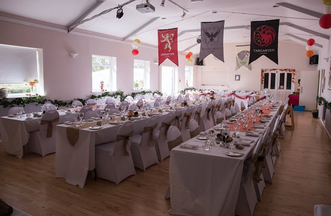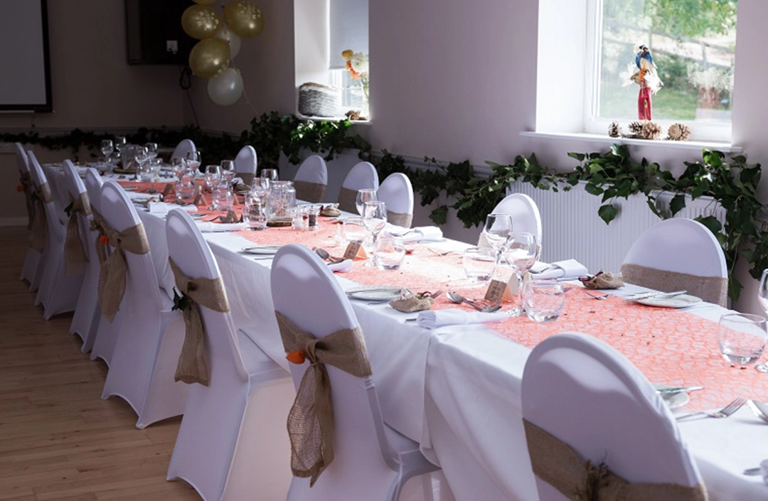 • The main hall has a PA system with radio mics and auxillary connections – ideal for speeches and a disco afterwards, there are also disco lights available in the hall